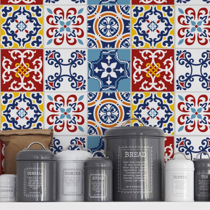 Adesivo De Parede Para Cozinha Azulejo Portugues Lavavel No Elo7 Sete Saba 11c6f1f - Ele possui 6 padroes de estampas geometricas em cores vivas, sendo verde escuro, azul, branco e bege.
