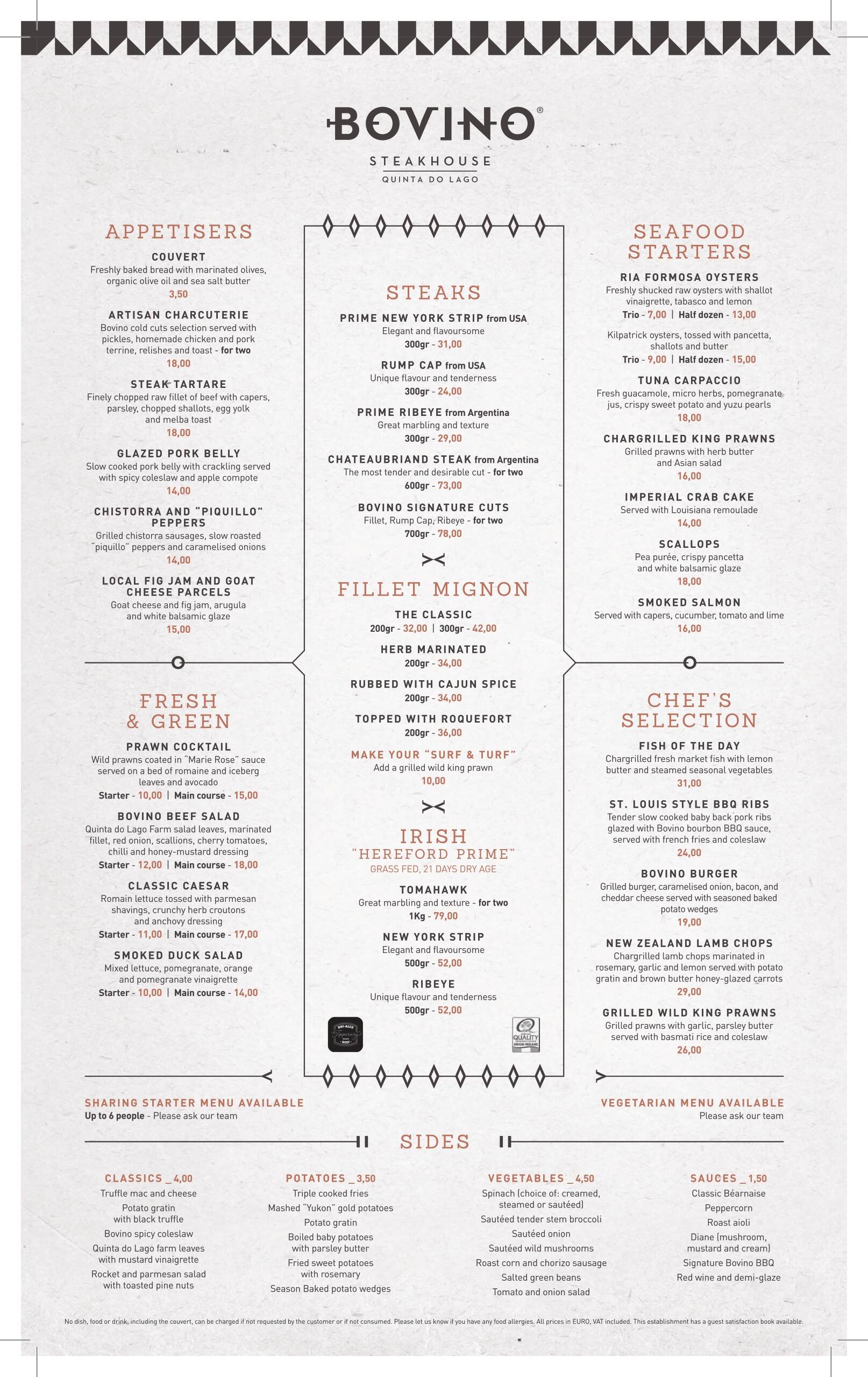 Trending Bovinos Steakhouse Menu The best steak in town. Bovinos Steakhouse Menu : Reserve a table at bovino steakhouse, quinta do lago on tripadvisor: