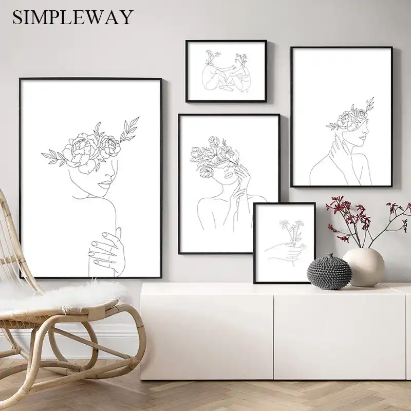 Cartel De Dibujos De Lineas Simples Para Mujer Obra De Arte Abstracta De Flores Blancas Y Negras Pintura En Lienzo Imagen Artistica De Pared Decoracion Del Hogar Pintura Y Caligrafia Aliexpress - Numero 40892, perteneciente a la categoria de fondos de arte digital.