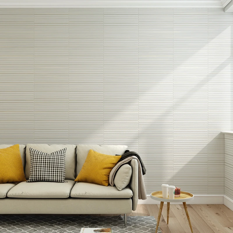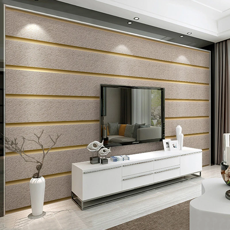 Papel Tapiz De Rayas Horizontales Para Paredes De Sala De Estar Tela Moderna No Tejida De Gamuza 3d Para Decoracion Del Hogar Tv Sofa Papeles Pintados Aliexpress - Un papel pintado estampado con rayas verticales formadas por pequenas hojitas color piedra.