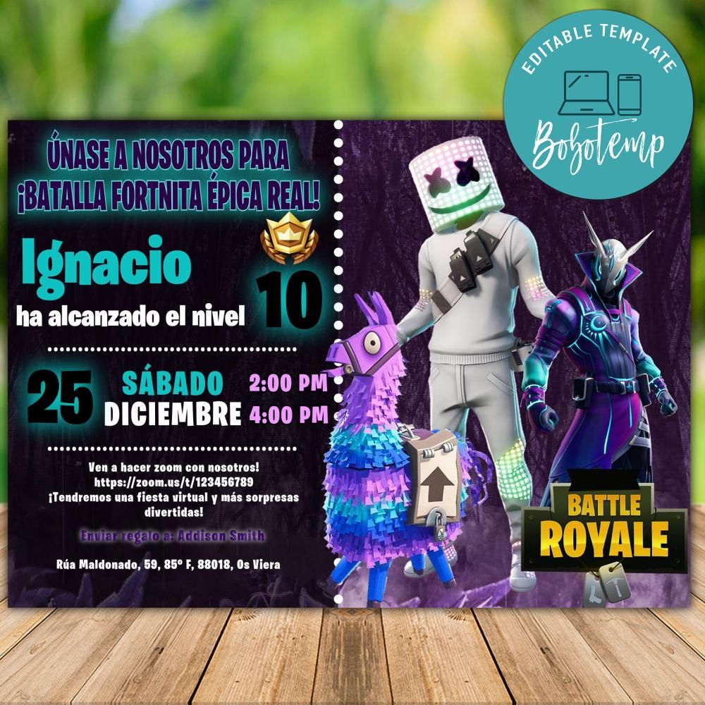 Invitacion De Cumple Fortnite Marshmello Personalizado X30 Mercado Libre - 2490 invitaciones de cumpleanos editables.